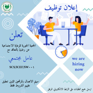 تعلن الجمعية الخيرية للرعاية الاجتماعية عن توفر شاغر وظيفي في مشروع عطاء بالتعاون مع منظمة اليونيسيف (UNICEF)