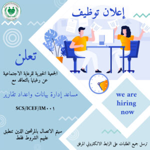 تعلن الجمعية الخيرية للرعاية الاجتماعية عن توفر شاغر وظيفي في مشروع عطاء  بالتعاون مع منظمة اليونيسيف (UNICEF)