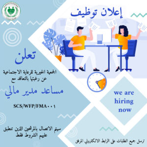 تعلن الجمعية الخيرية للرعاية الاجتماعية عن توفر شاغر وظيفي في المشروع الغذائي بالتعاون مع برنامج الأغذية العالمي (WFP)